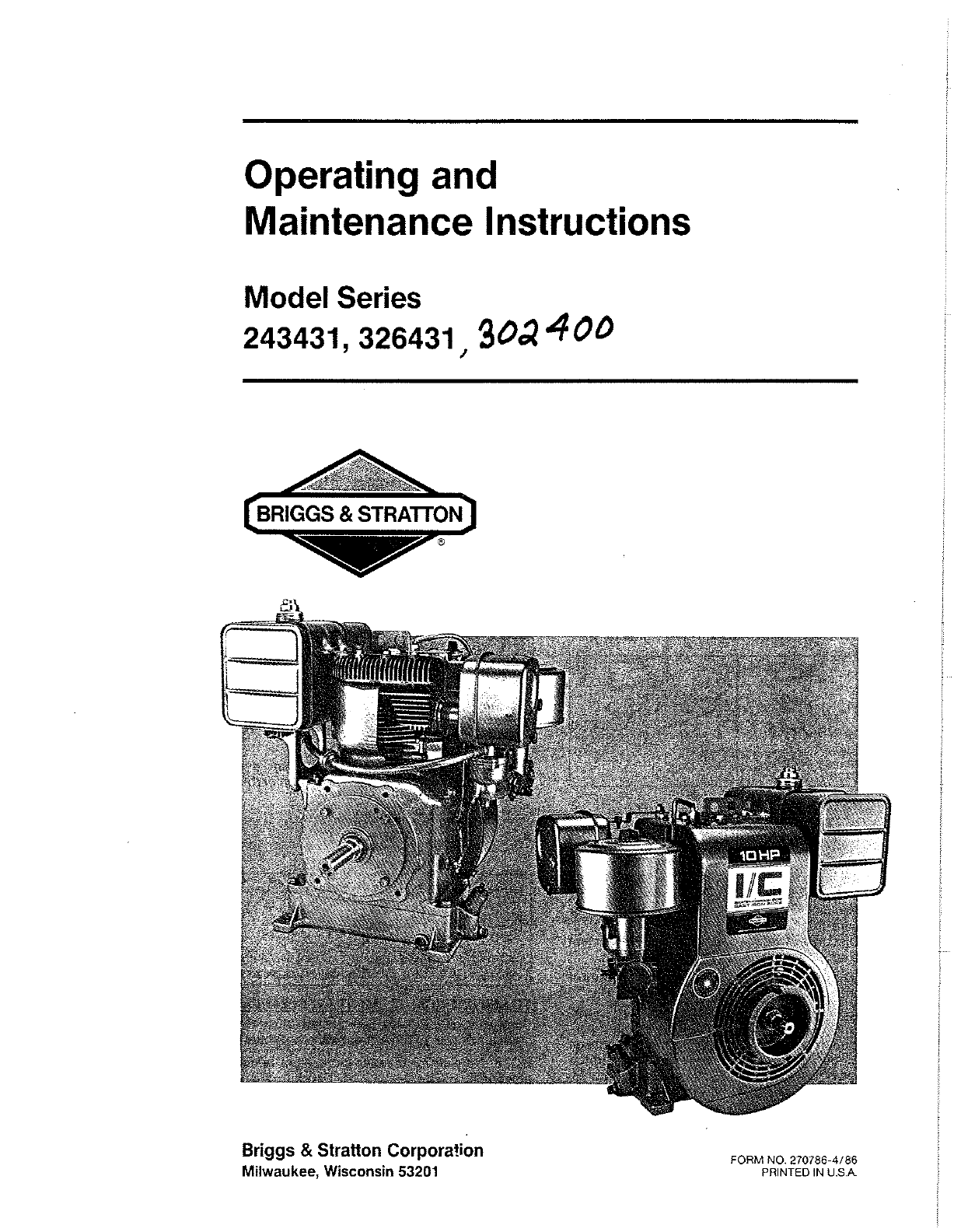 Consulte online ou descarregue Manual do Utilizador para Equipamento Briggs-stratton 243431 Series. Briggs & Stratton 243431 Series User Manual Manual do Utilizador